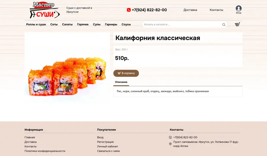 Мастер Суши - разработка онлайн-магазина доставки еды
